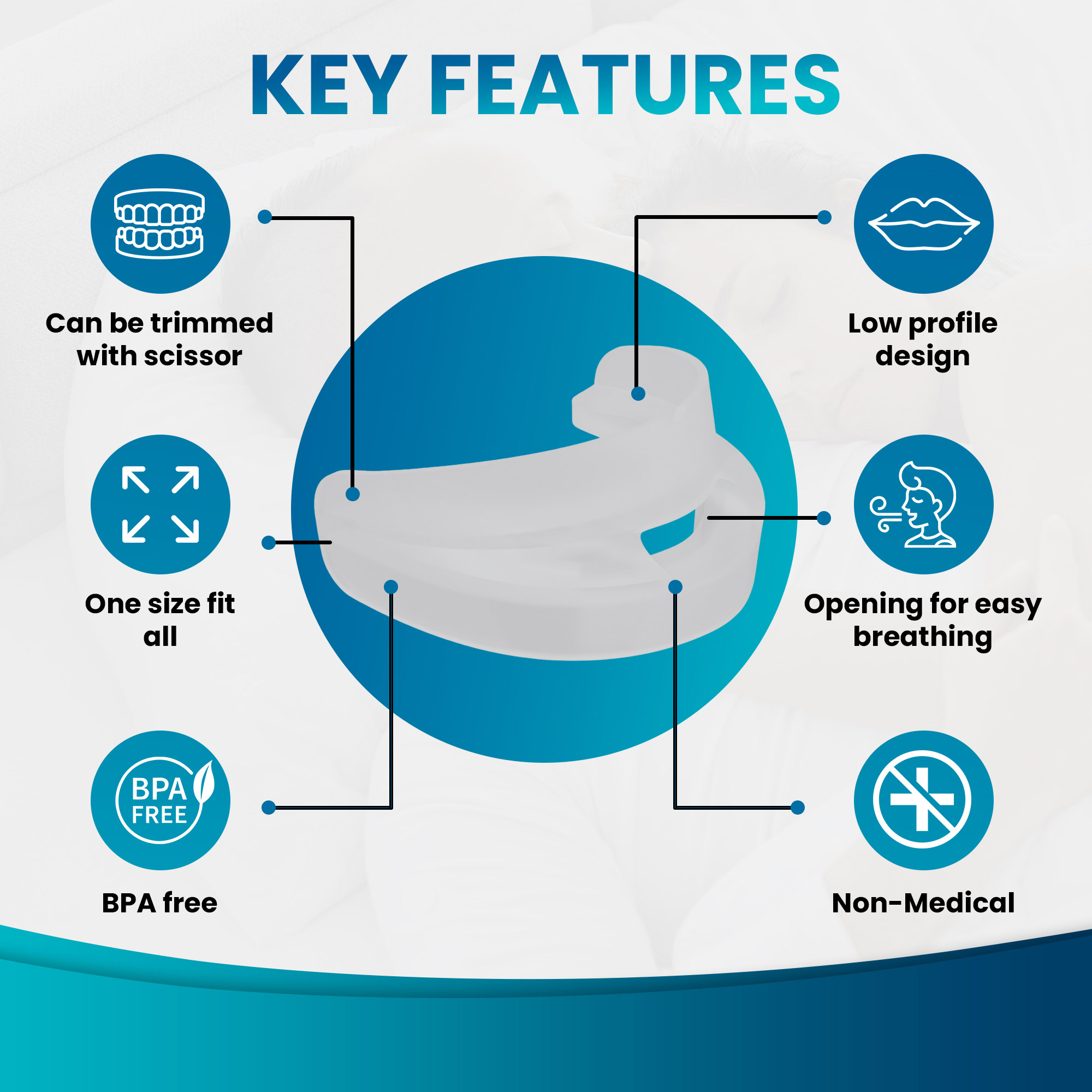 Unlike most other anti-snoring devices, there is no fitting involved. Snorewizard's unique design of slim, soft material makes it fully effective for most mouths and is ready to use. Snore Wizard has also been designed to be trimmed if necessary.